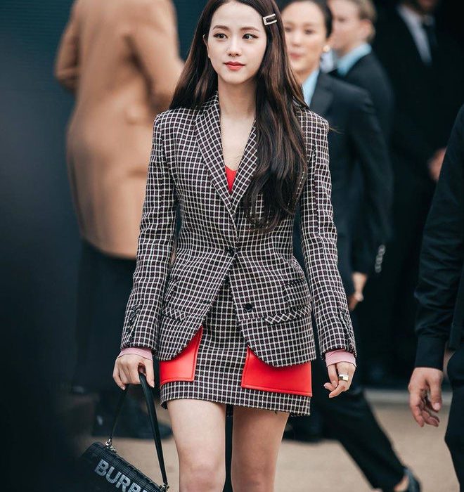 Cô nàng Jisoo vừa qua đã có mặt tại Anh để tham dự show diễn của nhãn hàng thời trang nổi tiếng Burberry, cô cũng là người mở đầu chuỗi sự kiện lần này. Có thể thấy, chị cả Black Pink diện một bộ cánh phong cách công sở với áo vest hoạ tiết kẻ caro kèm váy ngắn. Dù trông rất kiểu mẫu, thế nhưng cộng với nhan sắc xinh đẹp cùng thần thái rạng rỡ của mình, Jisoo hoàn toàn toả sáng đúng nghĩa giữa sự kiện.